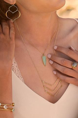 Easy layering with our triple chevron and arrowhead gemstone necklace. Shop this look ttp://bit.ly/1G6iiCt