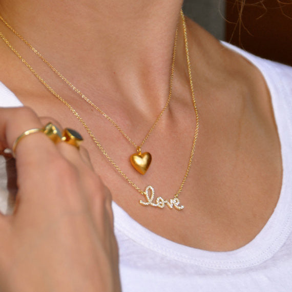 Our gold puffed heart pendant necklace will add depth to your layered necklace look. Select from two different lengths and pair with our other love-inspired jewelry.